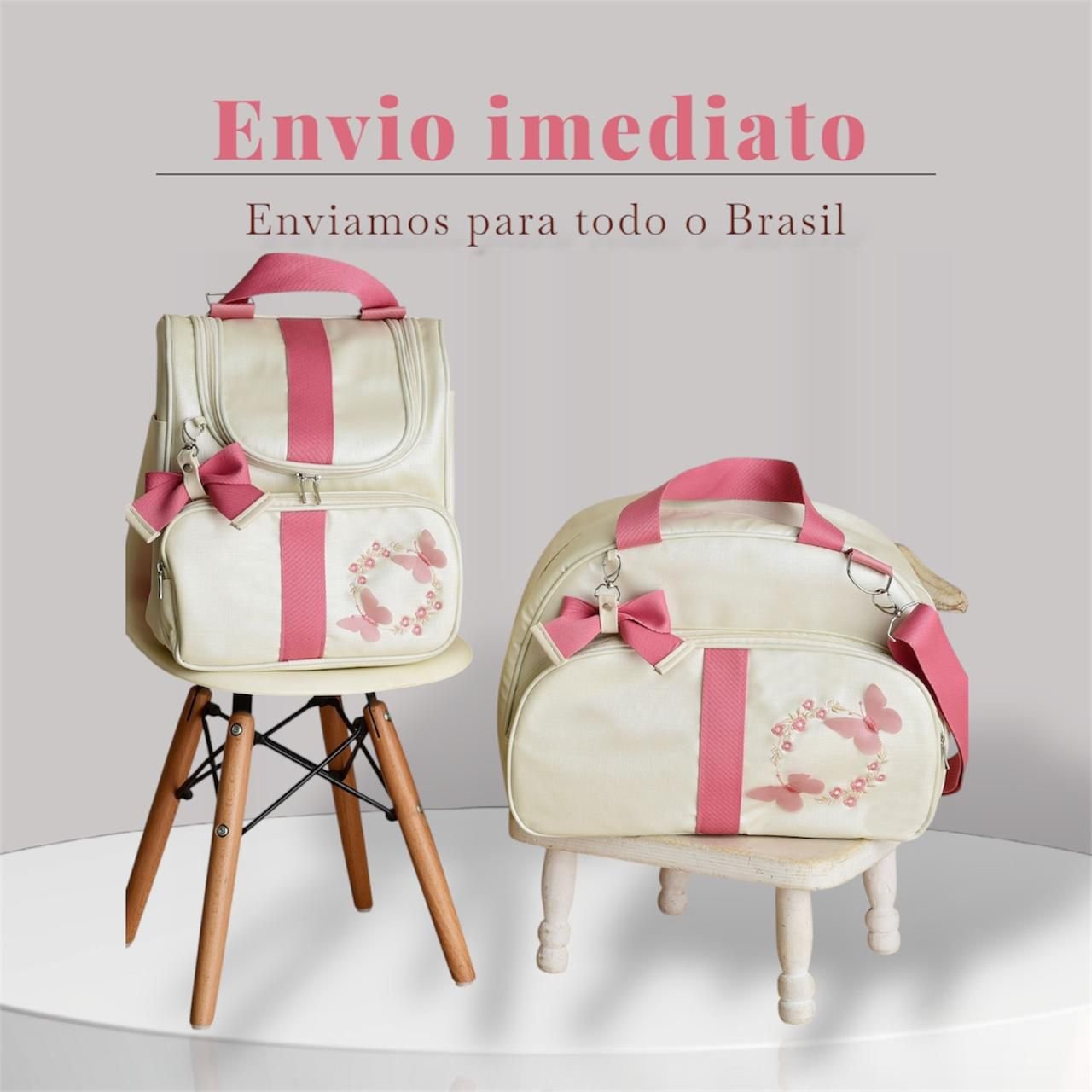 - 1 Bolsa Grande (G): Espaçosa e elegante, ideal para levar tudo o que o bebê precisa em passeios prolongados, visitas ou viagens. Com compartimentos inteligentes, ela mantém fraldas, roupas, brinquedos e acessórios organizados e acessíveis, sem perder o charme.
